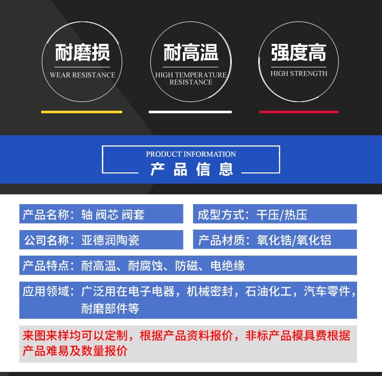 陶瓷異型件的性能特點1. 硬度大其洛氏硬度為HRA80-90,硬度僅次于金剛石,遠遠超過耐磨鋼和不銹鋼的耐磨性能。2. 耐磨性能極好經中南工大粉末冶金研究所測定,其耐磨性相當于錳鋼的266倍,高鉻鑄鐵的171.5倍。在同等...