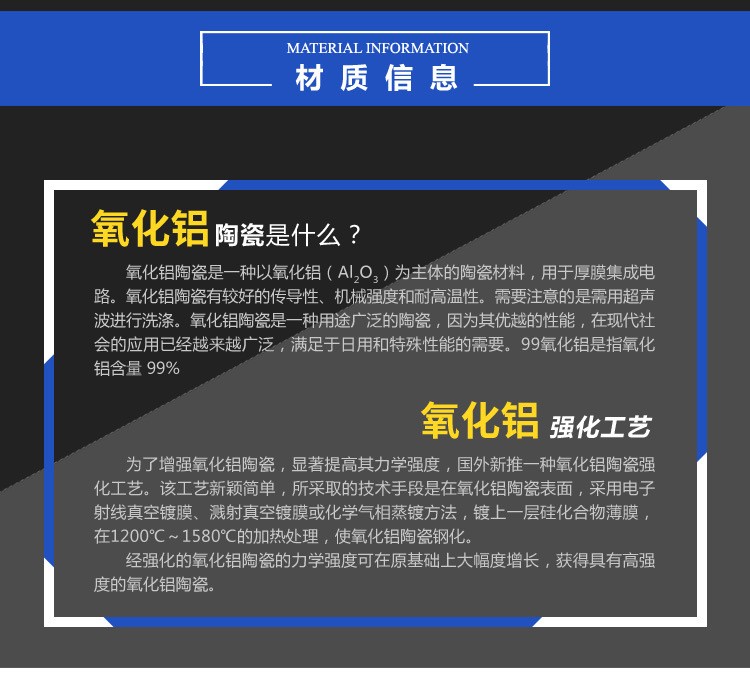 關于氧化鋁陶瓷的特點氧化鋁陶瓷分為高純型與普通型兩種。高純型氧化鋁陶瓷系Al2O3含量在99.9%以上的陶瓷材料,由于其燒結溫度高達1650—1990℃,透射波長為1~6μm,一般制成熔融玻璃以取代鉑坩堝;利用其透光性及...